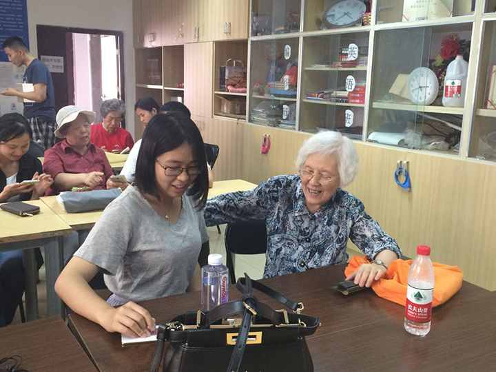 这一学期快要进入尾声了,服务队在这次活动中进行了期末串讲的第一讲,带领学员们进行复习。我们教授过学员们手机的基本操作,包括电话、短信、手机通讯录、相机的使用,还有手机APP的下载与使用,例如手机地图,手机记账APP,以及最受老年人青睐的微信。复习串讲主要针对学员各自在学习复习的过程中遇到的问题进行解答,并加以巩固,由学员自行操作,志愿者发现问题并为老人解决问题。学员们的学习效果不错,有部分学习板块有些问题,在志愿者的帮助下顺利得到了解决。