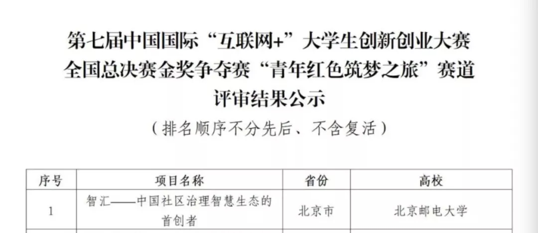 2021年10月13日至15日,第七届中国国际“互联网+”大学生创新创业大赛全国总决赛在南昌大学举办,夕阳再晨联合创始人罗旭作为“智汇—中国社区治理智慧生态的首创者”项目的负责人,经过精彩角逐,从全国228万余个项目中脱颖而出,以小组第一的成绩夺得全国金奖!