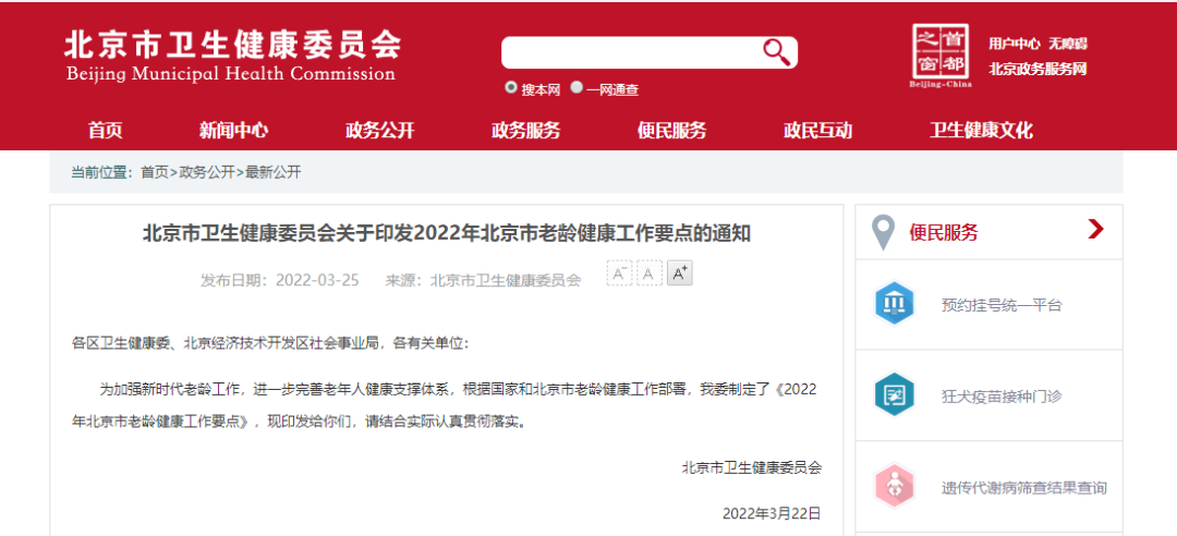政策速览 | 2022年北京市老龄健康工作要点