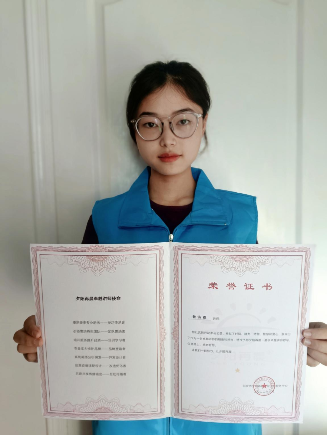 很高兴能成为夕阳再晨的一份子,能在最好的青春年华选择用这样的方式为更多人做出贡献。在本科期间,我用各种方式探索了自己的边界。主持过晚会,站上过舞台,组织过活动……每一次探索,都为我认清自己增添了一份色彩。在进入研究生阶段,我想去做更多有意义的事情,不仅是为了探索自己,更是为了服务社会。人工智能,是我的专业,但听起来却离老年人那么遥远。而我们要做的,就是让人工智能、5G、智能手机等等遥远的事物,变得触手可及。这就是我们星级卓越讲师的使命。
