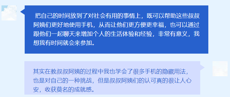 夕阳再晨,不仅是社区老年群体在志愿者们的帮助下再次跟上时代步伐,与时俱进,融入社会的过程,也是志愿者们发现、改善社会问题,实现社会价值、获得成长启发的过程,是爷爷奶奶们与青年志愿者们之间的的双向奔赴。