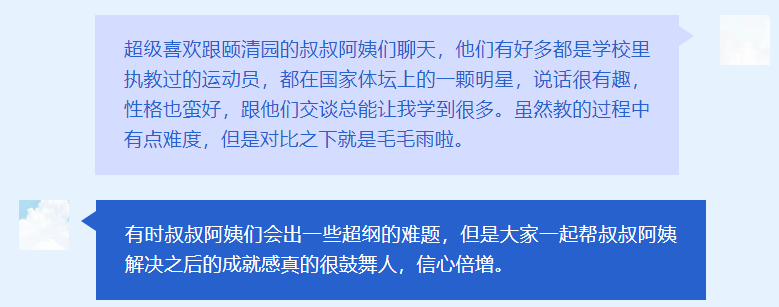 在每个周三上午,北京体育大学的志愿者们放下手中的事情,停下步伐,去等待,去与老年朋友们手牵着手一同去感受新时代的美好,去欣赏与他们年轻时不同的风景。时间一刻不停向前走无疑是冷酷的,但这或许也正是夕阳再晨的意义,它让我们去关注与帮助那些或许被时代忘记了的老年人。期待下次的夕阳再晨,期待能为我们的老朋友们带去更多新鲜事物。